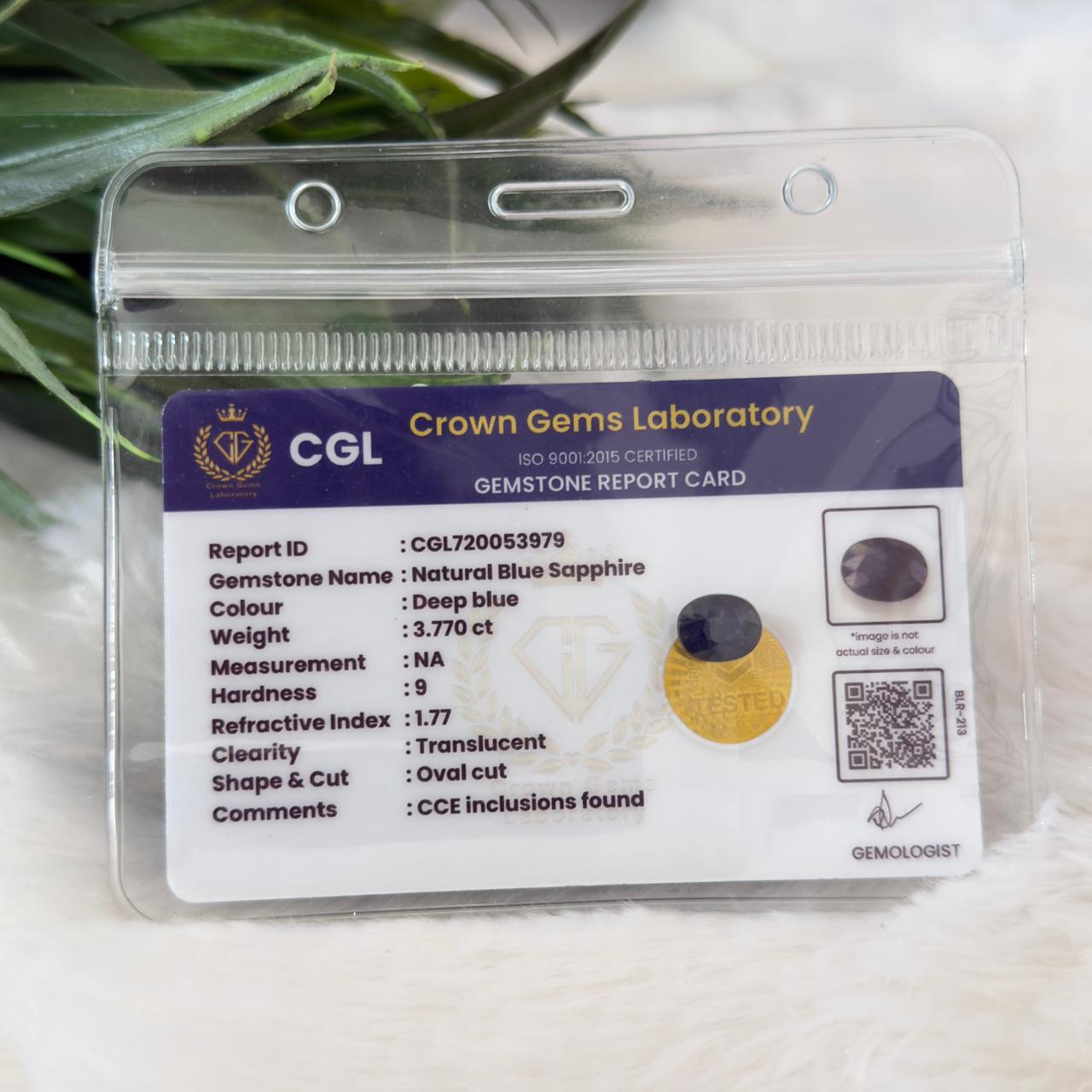 3.770 Carat Natural Blue Sapphire (Neelam)