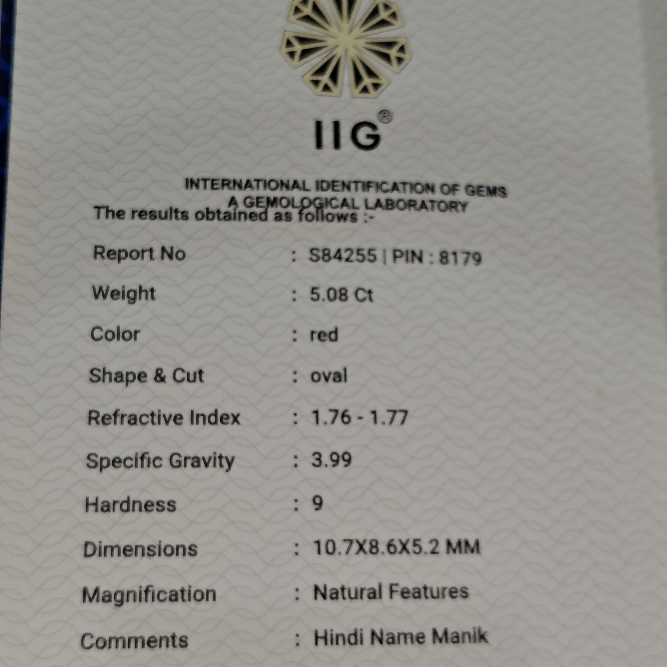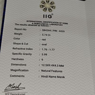 This 5.08 Carat Natural Ruby (Manik) from Bangkok origin is a premium gemstone known for its rich red color and strong astrological significance. Ruby is associated with the planet Sun and is believed to bring confidence, leadership, success, authority, and positive energy to the wearer.