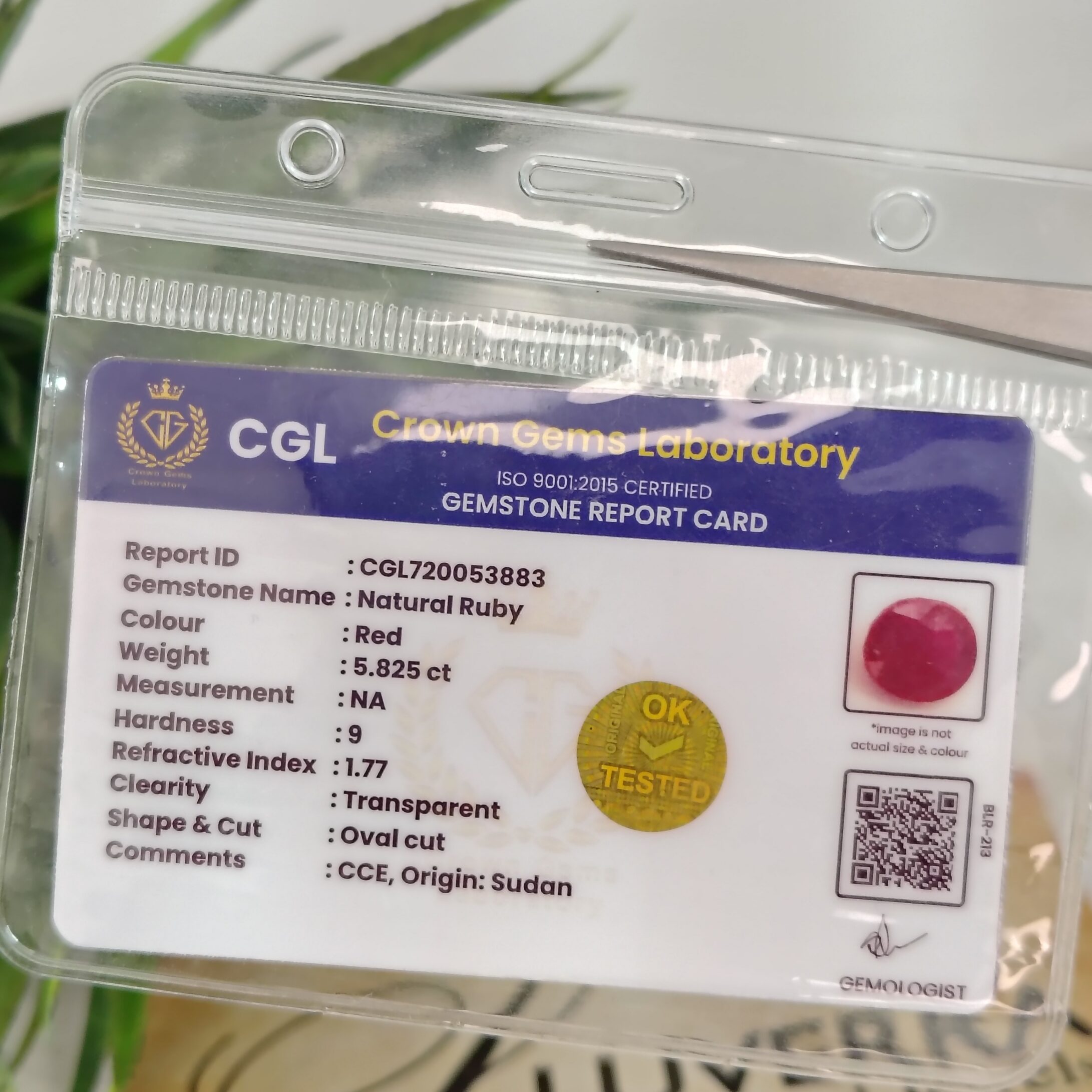 This 5.825 carats Natural Ruby (Manik) from BKK (Bangkok) is a high-quality, energy-rich gemstone ideal for astrology, rings, and pendants.
