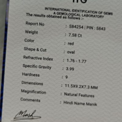 This gemstone is carefully selected for its natural quality and brilliance. In Vedic astrology, Ruby is recommended to strengthen the Sun in the horoscope and is often worn to enhance self-confidence, fame, career growth, and overall success.