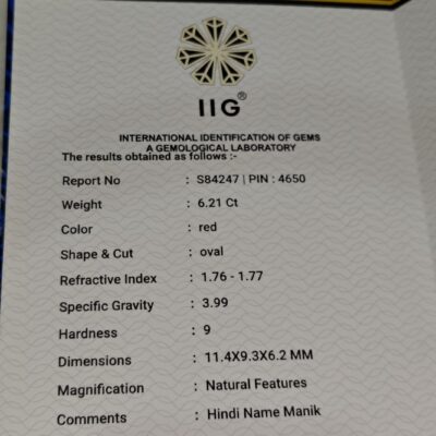 This gemstone is carefully selected for its natural quality and brilliance. In Vedic astrology, Ruby is recommended to strengthen the Sun in the horoscope and is often worn to enhance self-confidence, fame, career growth, and overall success.