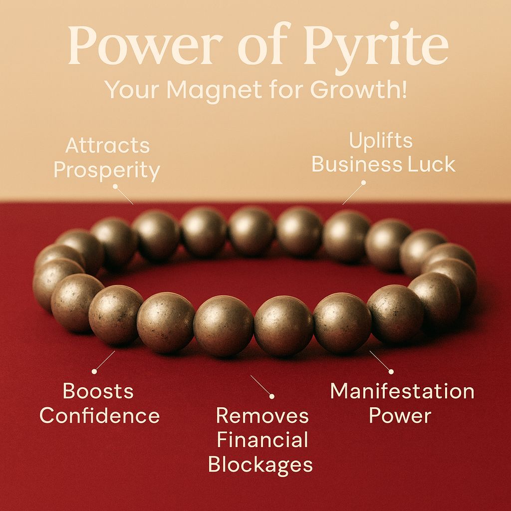 Known as the Stone of Luck and Wealth, the Pyrite Money Magnet Bracelet is perfect for attracting abundance, prosperity, and success. Crafted from genuine Pyrite beads, it not only enhances financial energy but also acts as a strong protective shield against negative vibes. A stylish and powerful addition to your daily wear, business rituals, or gifting needs.
